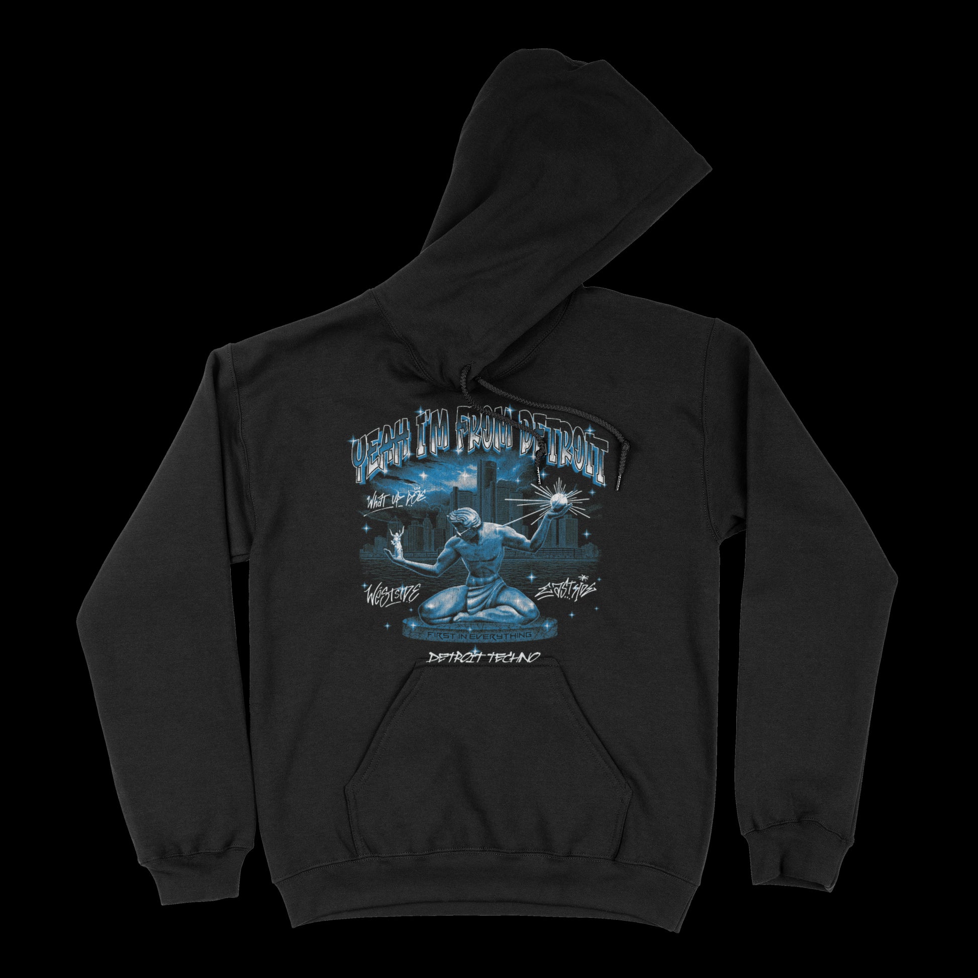 This design pays tribute to the city that created techno and shaped a culture that never dies. Featuring the Spirit of Detroit statue against the skyline, this piece is a loud statement of pride, resilience, and energy.